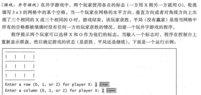在井字游戏中,两个玩家使用各自的标志(一方用 X 则另一方就用O),轮流填写3x3的网格中的某个空格。当一个玩家在网格的水平方向、垂直方向或者对角线方向上出现了三个相同的 X 或三个相同的 o时,游戏结束,该玩家获胜。平局(没有贏家)是指当网格中所有的空格都被填满时没有任何一方的玩家获胜的情况。创建一个玩井字游戏的程序。